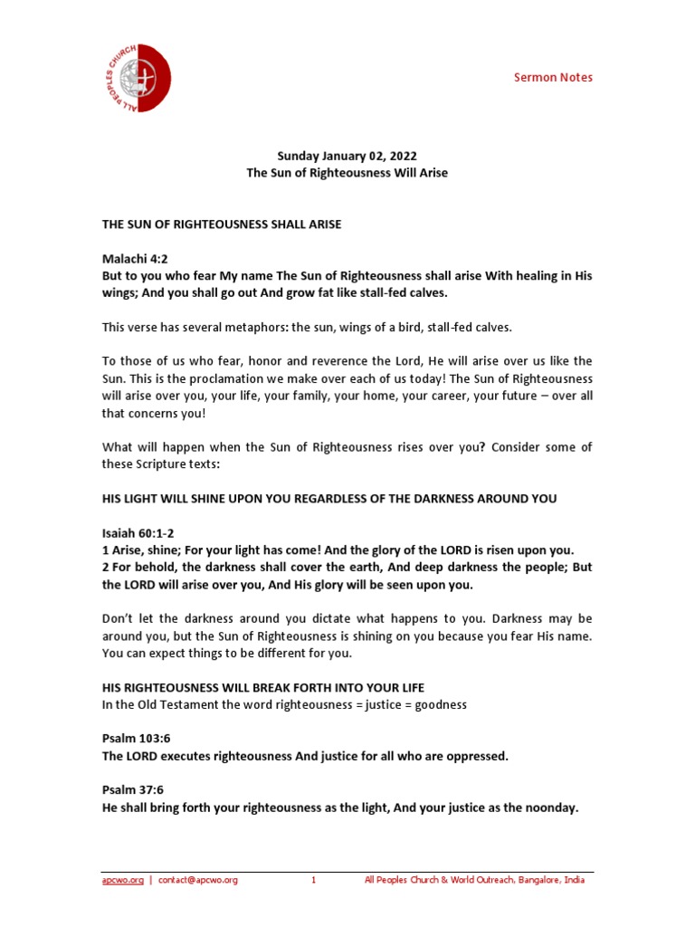 The Sun Of Righteousness Will Arise Ps Ashish Raichur Pdf Prayer Sermon